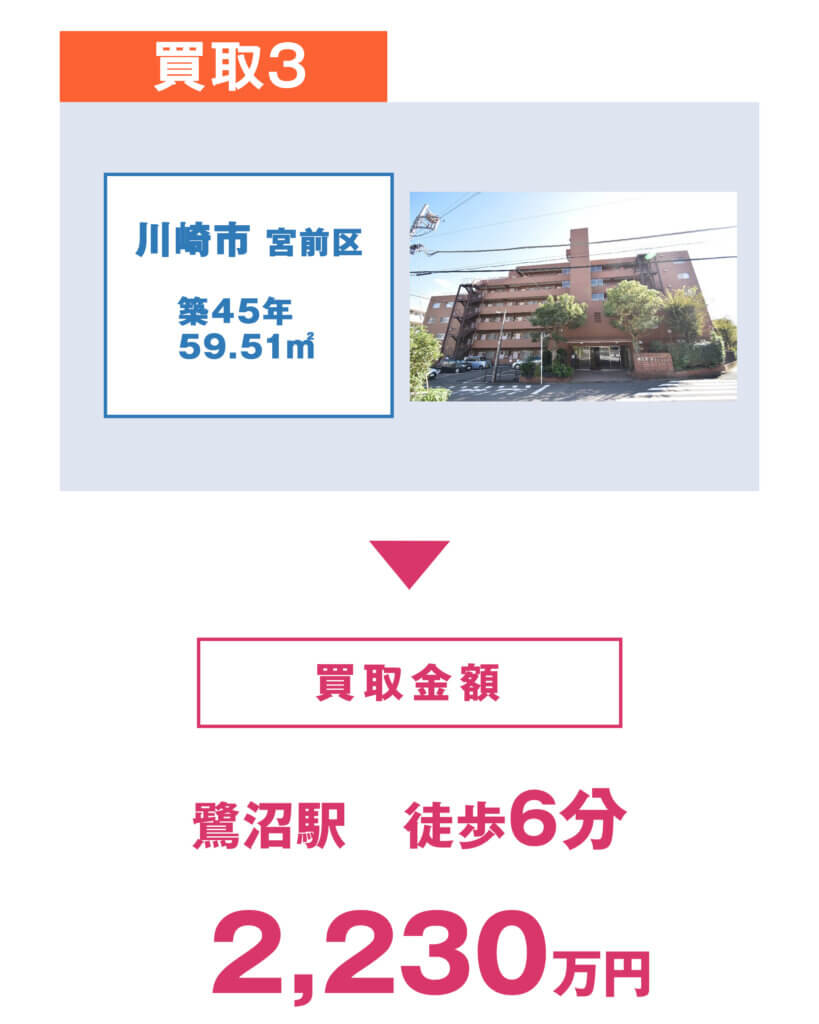 マンション売却査定もLINE登録で無料査定 私達は購入したマンションを、その後リフォームやリノベーションといった付加価値をつけて販売をするため採算がとりやすく「買取に自信」があります。 一括査定に出されたご経験がある方は是非セイルコーポレーションに査定を出してみてください。 直接買い取りは仲介会社を挟まないので手数料もかかりませんので手元に残る金額大きくなります。 余計な仲介手数料をかけないことで最終的の口座残高に残る金額が多くなります。 ※仲介会社を頼むことによって『売却金額×3%+6万円』がかかります。 (例 売却金額3000万円の場合の仲介手数料 3000万円×3%+6万円+消費税=105.6万円) 手間暇かけない楽々売却♪ 不動産仲介での売却の場合、お部屋に物を残すことができません。例えば古いエアコンや使わないタンスなど、家具を残した場合一般的に撤去費用として数十万円かかりますがセイルコーポレーションの場合は家具や家電をそのまま残されて売却をされても撤去費用は一切かからないため、手残り額を増やして頂けます。 現地査定は一度だけ ネット掲載の必要なしでご近所にも知られません。 プライバシー厳守 極力お客様のご都合に合わせて柔軟にお引き渡し時期を決めます。 住み替えの売却は今のお住まいと次のお住いとの引き渡しのタイミングを合わせるのが難しいです。 「売却したいけどすぐに出ていかないとなるとそれは困る」 「売却が決まってから余裕を持って新しい家を見つけたい」 住み替えなど、次のお住まいへの引越のタイミングなどに合わせることも可能です。 もちろん次のお住まいのお手伝いもさせて頂くことでさらにスムーズに住み替えが可能です。 セイルコーポレーションでは無料査定で適正な買取査定価格を提示します。 直接買い取りますので現金化をお急ぎの方も安心してください。(査定日より最短5日) 私たちセイルコーポレーションが買い取るので、万が一欠陥や不具合があっても売主様に一切の責任は生じません。 A・S様 M・I様 S・N様 まずは売却の知識をつける事が大切です。 買取まで何日かかりますか? 最短5営業日で買取・現金化が可能です。 現金化をお急ぎの方は、訪問確認の日程調整と、必要書類のご準備をすばやくご対応いただく必要があります。 売却後はいつまでに退去しなければならないですか? お客様のご希望に合わせて調整が可能です。 通常ですと退去は売買契約の締結から長くても2-3カ月になります。売買契約の締結から最大6ヶ月までの間で調整可能です。もちろんその間に次のお住まいをお探しいただくことが可能です。 その他お客様のご希望により柔軟に対応させて頂きますのでお気軽にご相談ください。 電話でも相談できますか? もちろん可能です。 お気軽にお電話でご相談ください。 すでに仲介会社に売却を依頼中ですが、それでも大丈夫ですか? もちろん可能です。 これまでに多くのお客様が、仲介会社や一括査定サイトに依頼している中、金額や条件面でセイルコーポレーションに売却することを選んでいただいております。 最終的にセイルコーポレーションに売却することになった場合は、仲介会社を通さずに直接売却いただけます。 その場合、仲介手数料は一切かかりません。 査定依頼に入力した情報の漏洩が心配です。情報は出回らないですか? ご入力いただきましたお客様の情報は許可なく第三者に提供することはありませんし、十分なセキュリティ対策を講じておりますのでご安心ください。 築40年経っているマンションでも買取可能ですか? もちろん可能です。 セイルコーポレーションではリノベーションでの販売事業をしておりますので、築年数は古くても汚くても大丈夫です。 設備など故障してますが大丈夫ですか? そのままで大丈夫です。 弊社はリフォーム部署がありますので、物件の査定価格が下がることはありませんのでご安心ください。 間取 1R1K1DK1LDK2DK2LDK3DK3LDK4DK4LDKそれ以上 現況 居住中空き家賃貸中その他 物件の住所 物件の建物名と号室 専有面積 お客様氏名(必須) フリガナ メールアドレス(必須) お電話番号(必須) お客様のこだわりやご要望、ご相談など (任意:何でも大丈夫です)
